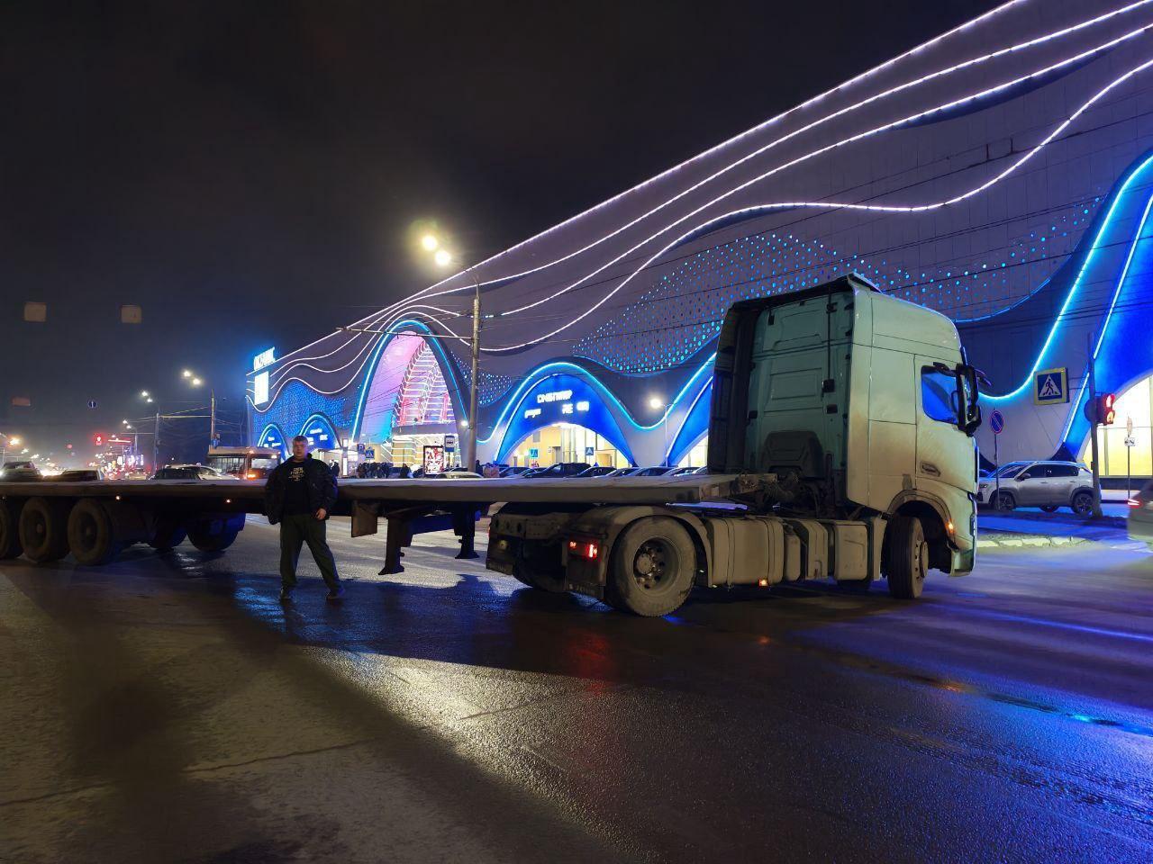 На проспекте Гагарина возле торгового центра «Океанис» грузовой автомобиль заблокировал несколько полос движения. Это привело к формированию значительного затора.
