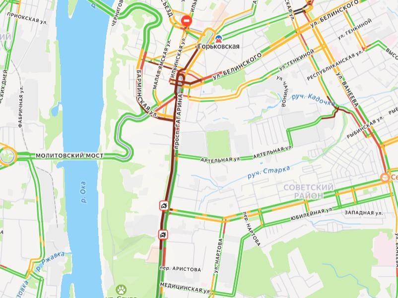 Согласно данным с онлайн-карт, затруднено движение в направлении Щербинок. Хвост пробки начинается от площади Лядова.