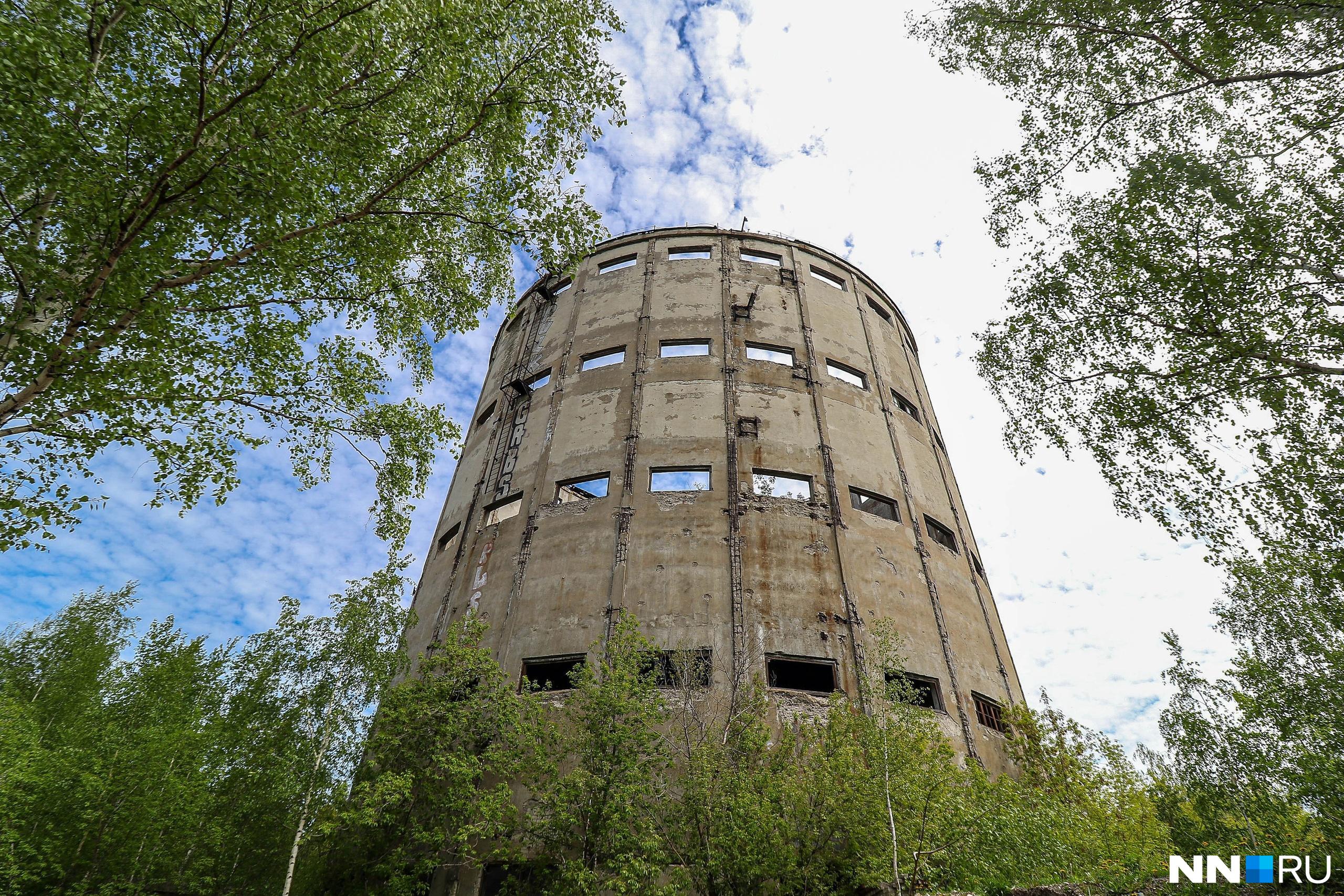 Здание ранее служило цехом Горьковского нефтемаслозавода. В советские годы здесь перерабатывали нефть, но в 1990-е предприятие закрыли. Башню частично разобрали на металлолом, сохранив только бетонный каркас.