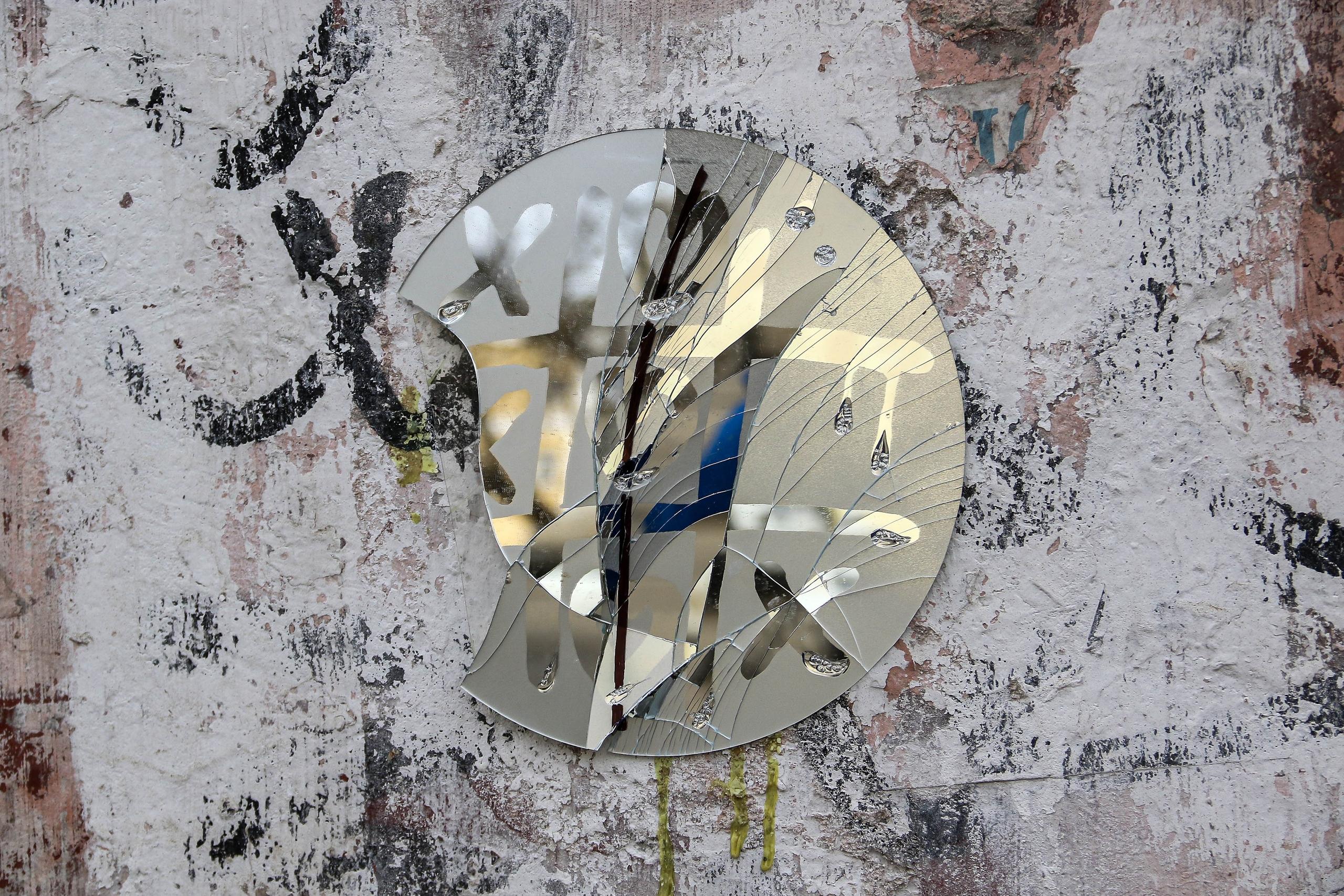 Это зеркало также пострадало от действий вандалов.