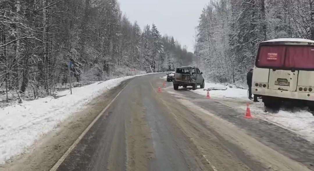 УАЗ столкнулся с автобусом под Семеновом из-за снега
