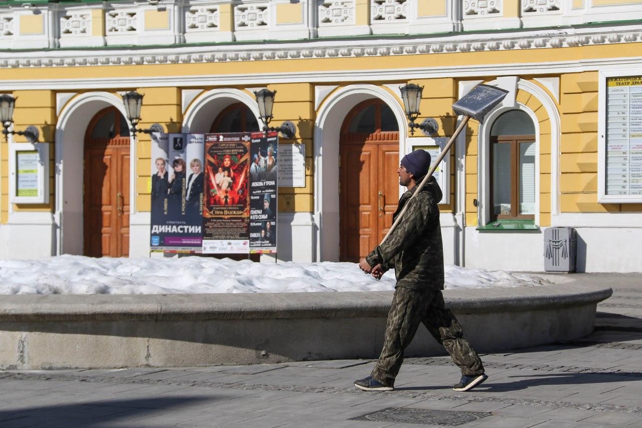 В Нижнем Новгороде установилась тёплая весенняя погода. На протяжении нескольких недель дневная температура достигает +10 градусов. После аномально снежной зимы сугробы постепенно исчезают, хотя в отдельных местах их ещё можно встретить.